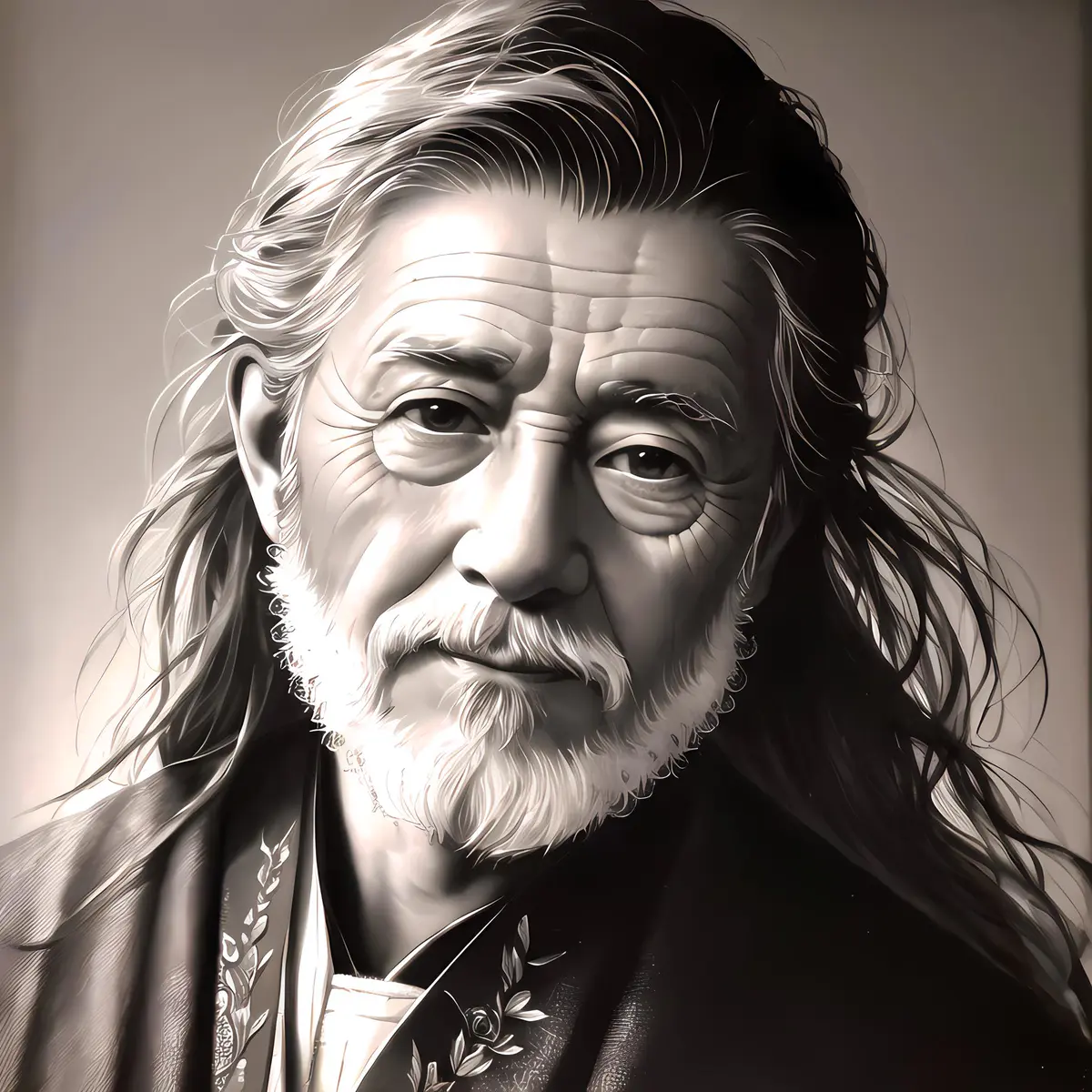 masterpiece, high quality, traditional painting, detailed brushwork, elderly man, close-up, wrinkles, expressive eyes, dignified expression, (portrait), monochromatic color scheme, low saturation, soft lighting, (impressionist style), oil on canvas, traditional attire, weathered face, cultural heritage, wise demeanor, (limited palette), authentic emotions, naturalistic details.