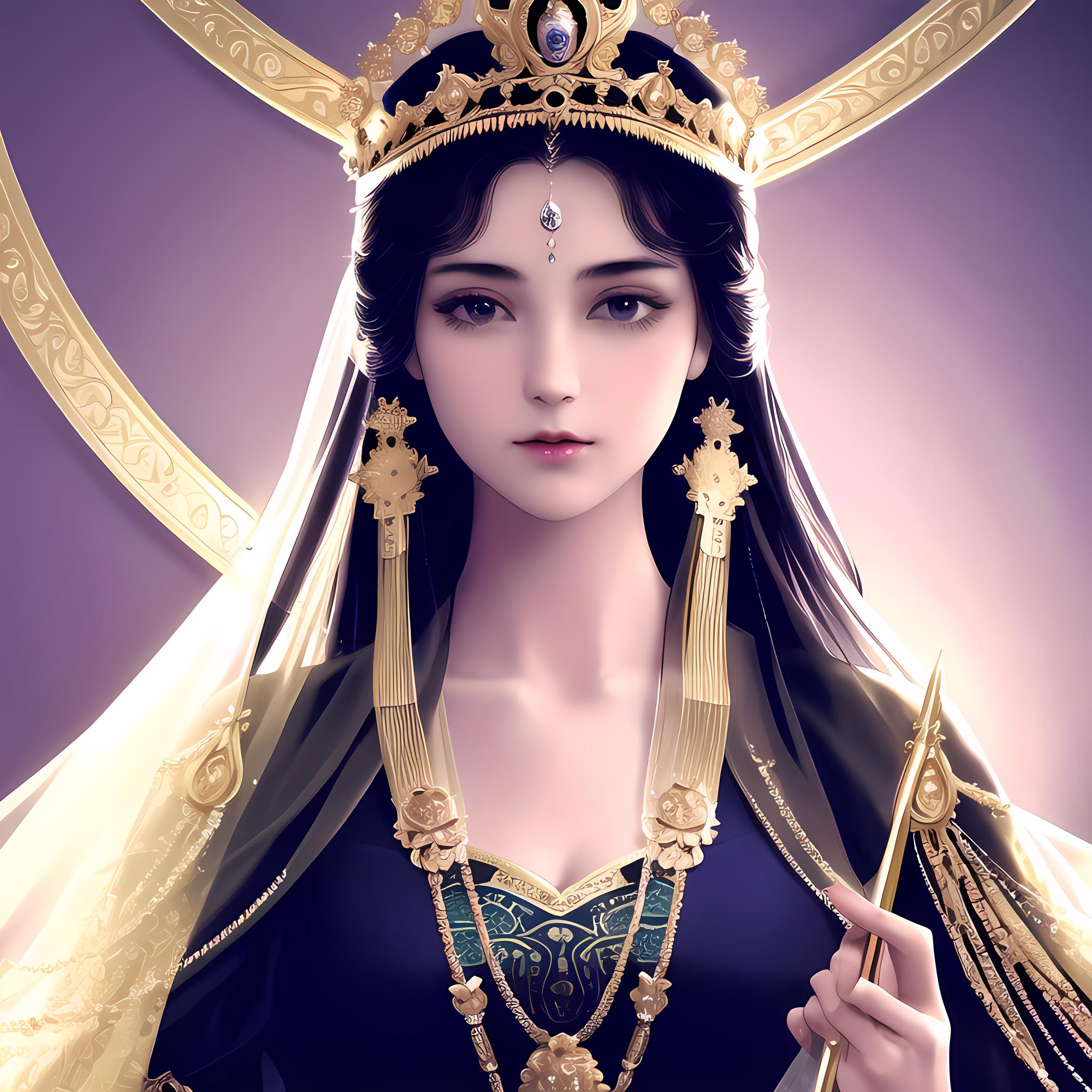 极高品质, 近景,浮雕效果,皇室女王,华丽的头饰,细节考究,肖像画,穿着华丽的礼服,深色背景,神秘氛围,借鉴维多利亚时代艺术风格,富有细腻的皮肤纹理,皇室印章,以及庄严威严的仪仗队。