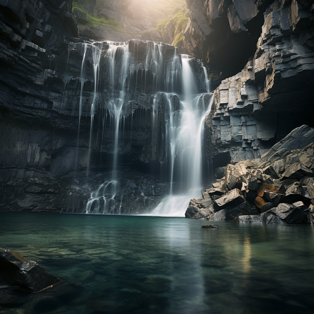 雷鸣般的瀑布从崎岖的山坡上倾泻而下